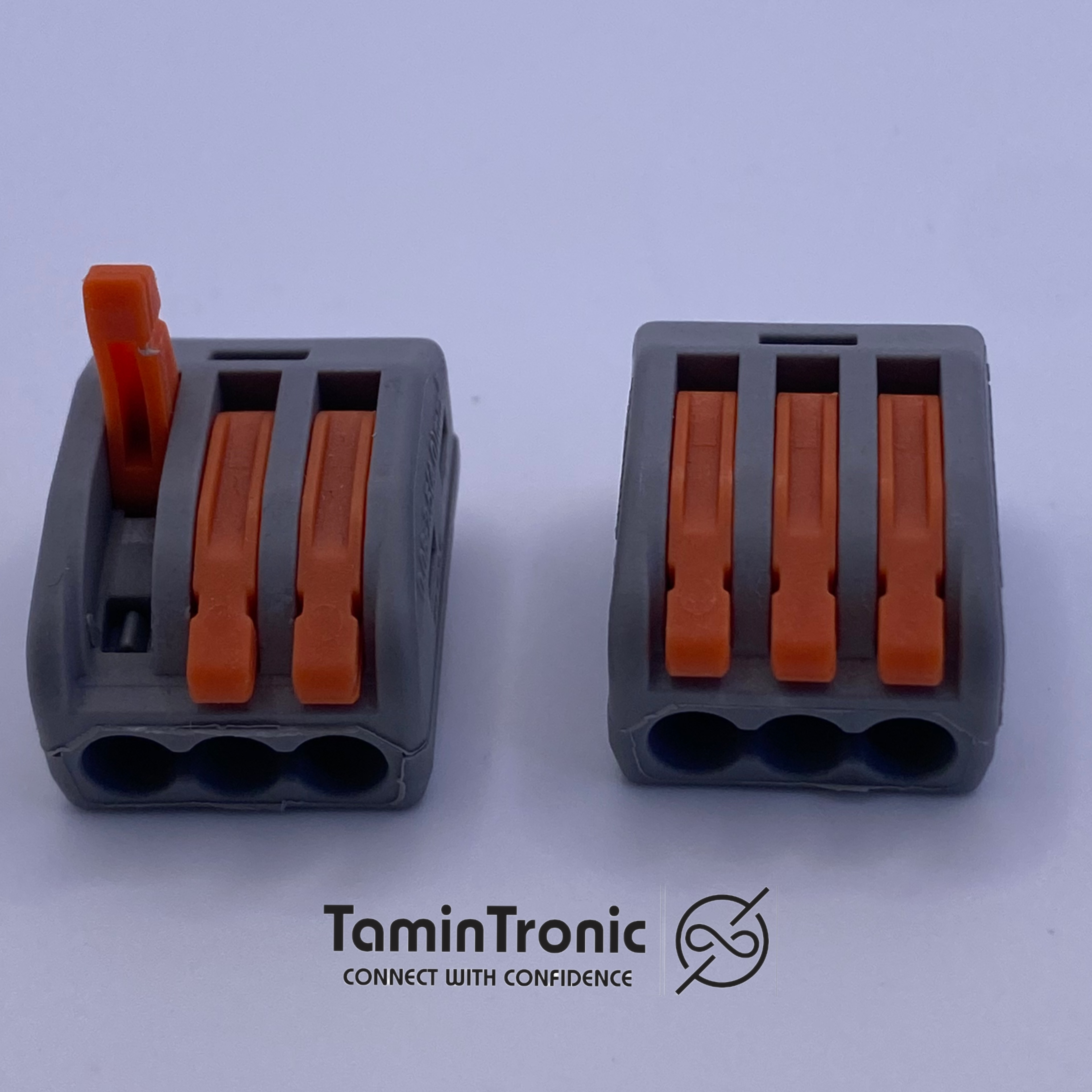 ترمینال اهرمی فشاری وگو ۳ پین یک کانکتور فشاری سهخانه برای اتصال سیمهای برق است که بدون نیاز به پیچ یا ابزار خاص، اتصال مطمئن و سریع ایجاد میکند. این طراحی باعث میشود سیمها بهصورت ایمن و با حداقل خطای انسانی در مدار قرار بگیرند.