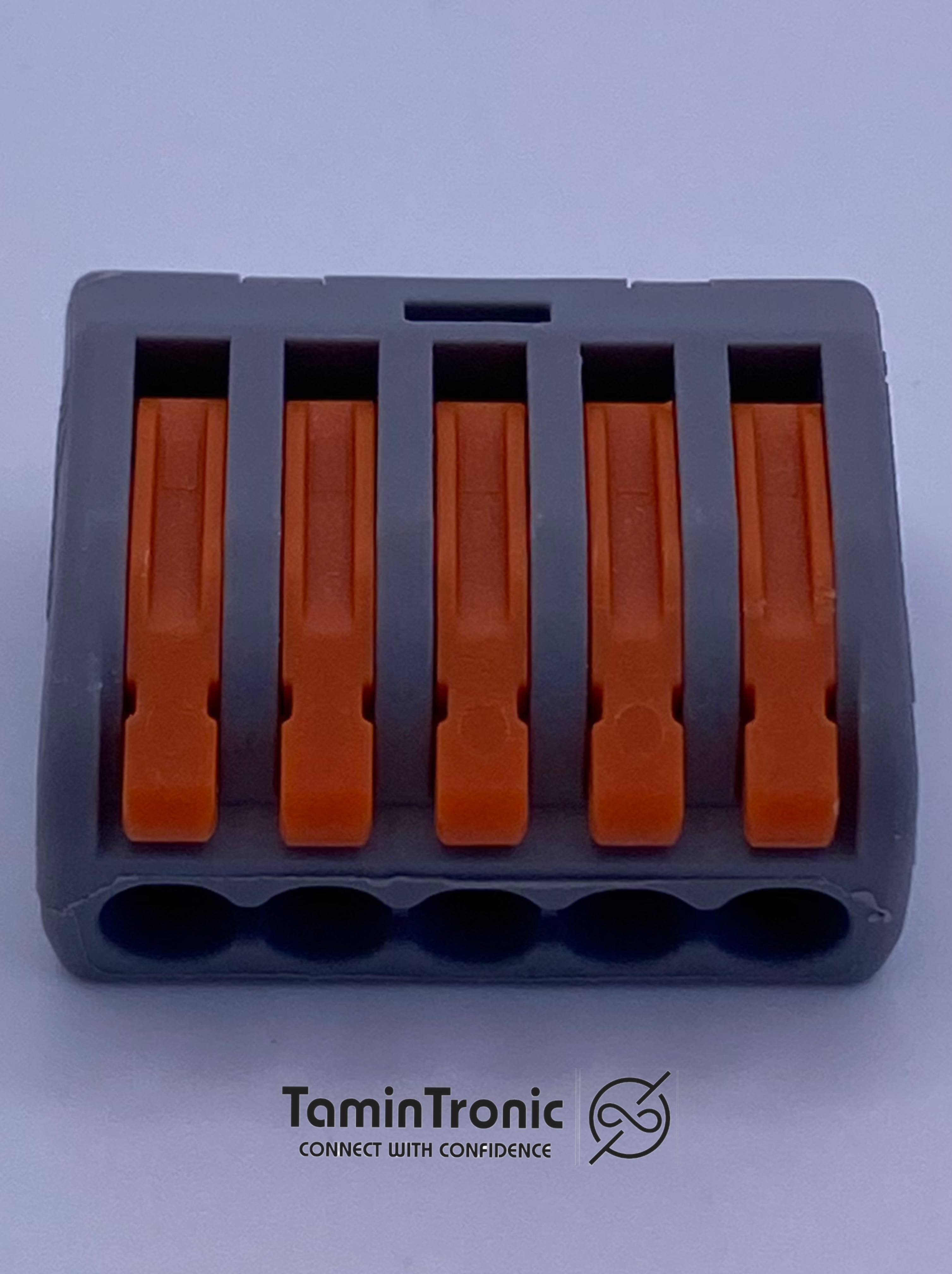ترمینال اهرمی فشاری وگو ۵ پین(پنج پین) | کانکتور فشاری پنجخانه اتصال سیم برق